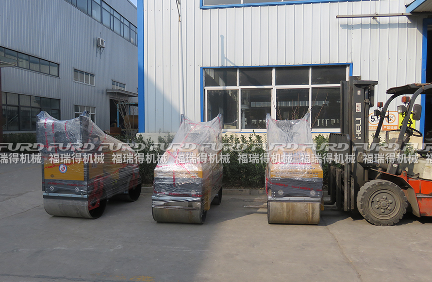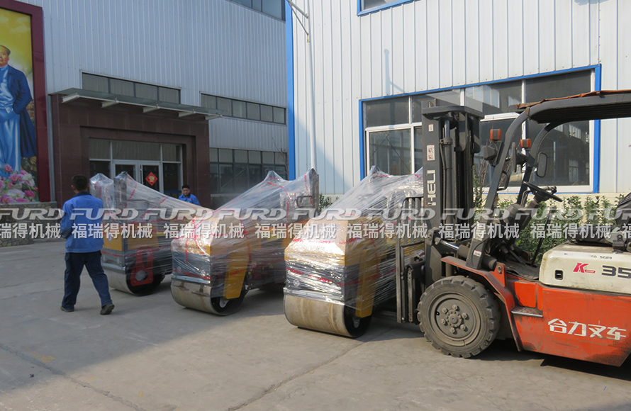 福瑞得機(jī)械3臺(tái)座駕雙鋼輪壓路機(jī)打包發(fā)往浙江
