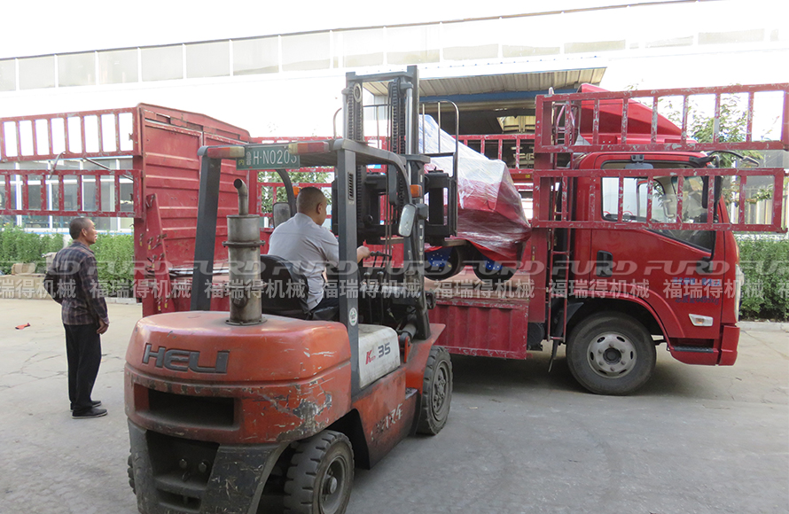 9月24日,福瑞得機械5臺手扶雙鋼輪壓路機打包發往浙江。