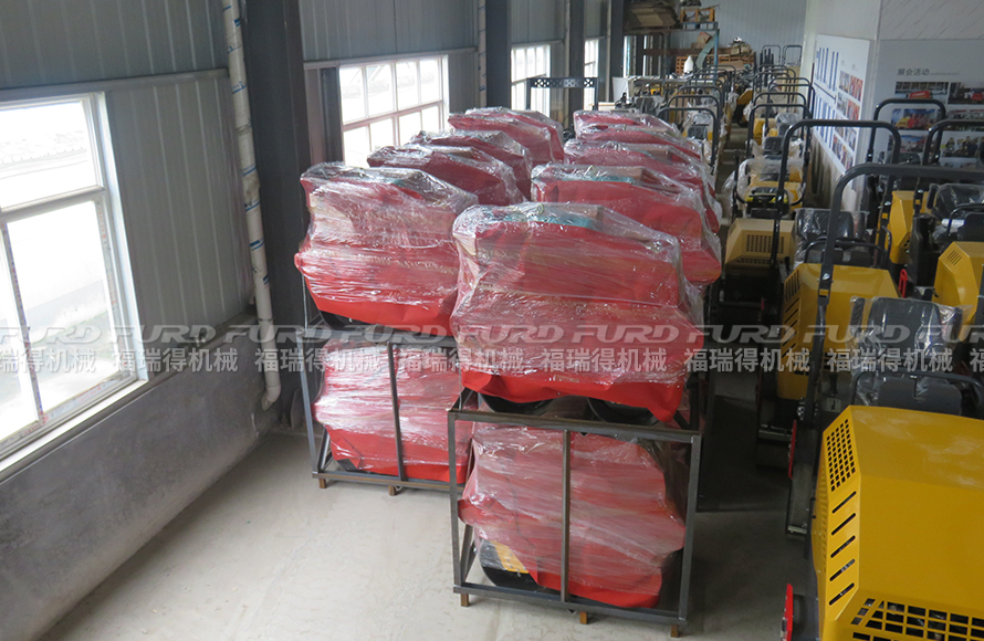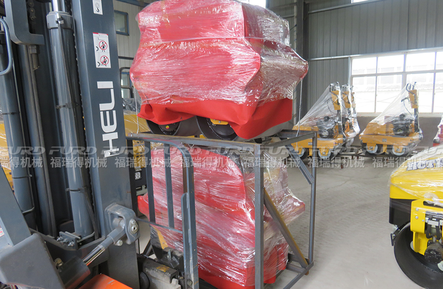 福瑞得16臺手扶雙鋼輪壓路機打包裝車發往湖北