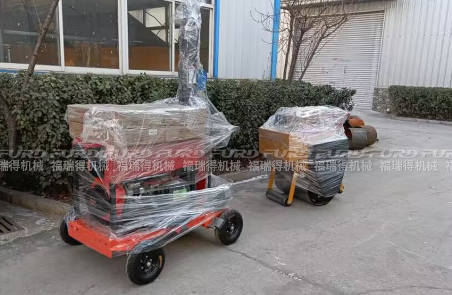 福瑞得1臺手扶壓路機和移動燈車打包發往紹興