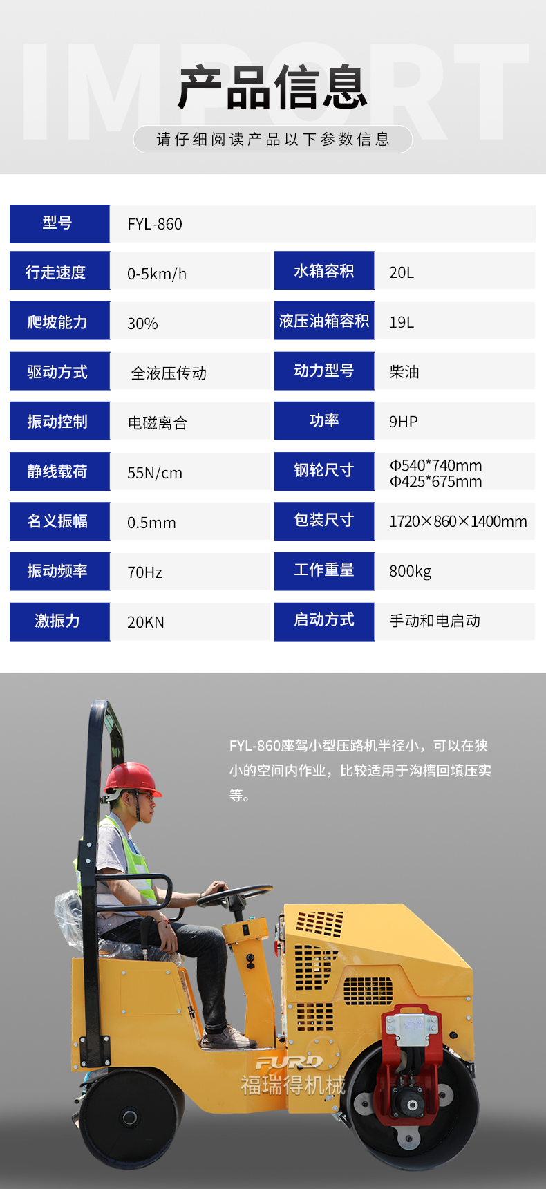主要用于溝渠基礎,道路,體育場地的壓實整平,也可用于壓實瀝青表面的作業。