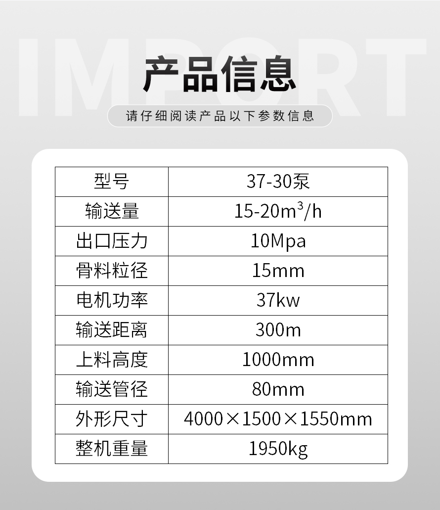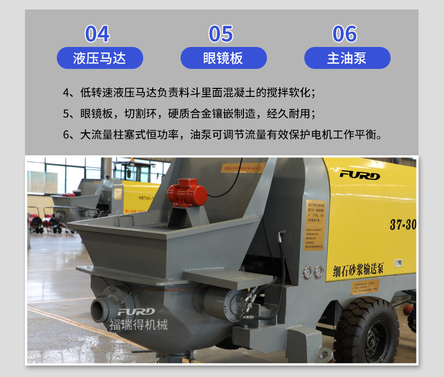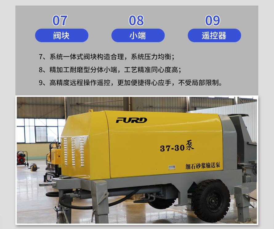 產品介紹: 1,大流量 采用加粗料缸,讓機械每一次循環出料多20% 2,效率高 移動便捷全部采用快接式管道卡,提高工作效率 3,便捷 本機可遠程遙控,操作不受地點限制,更加人性化 產品用途: 坡道灌漿,水平地面,隧道澆筑,模