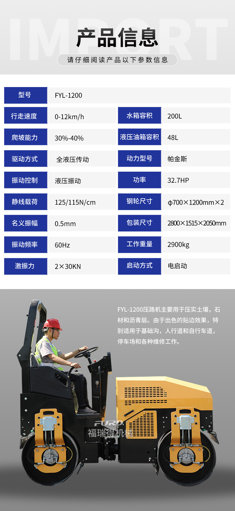 FYL-1200  3噸全液壓座駕振動壓路機