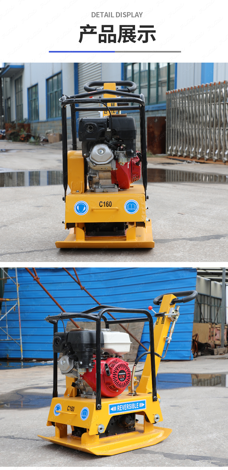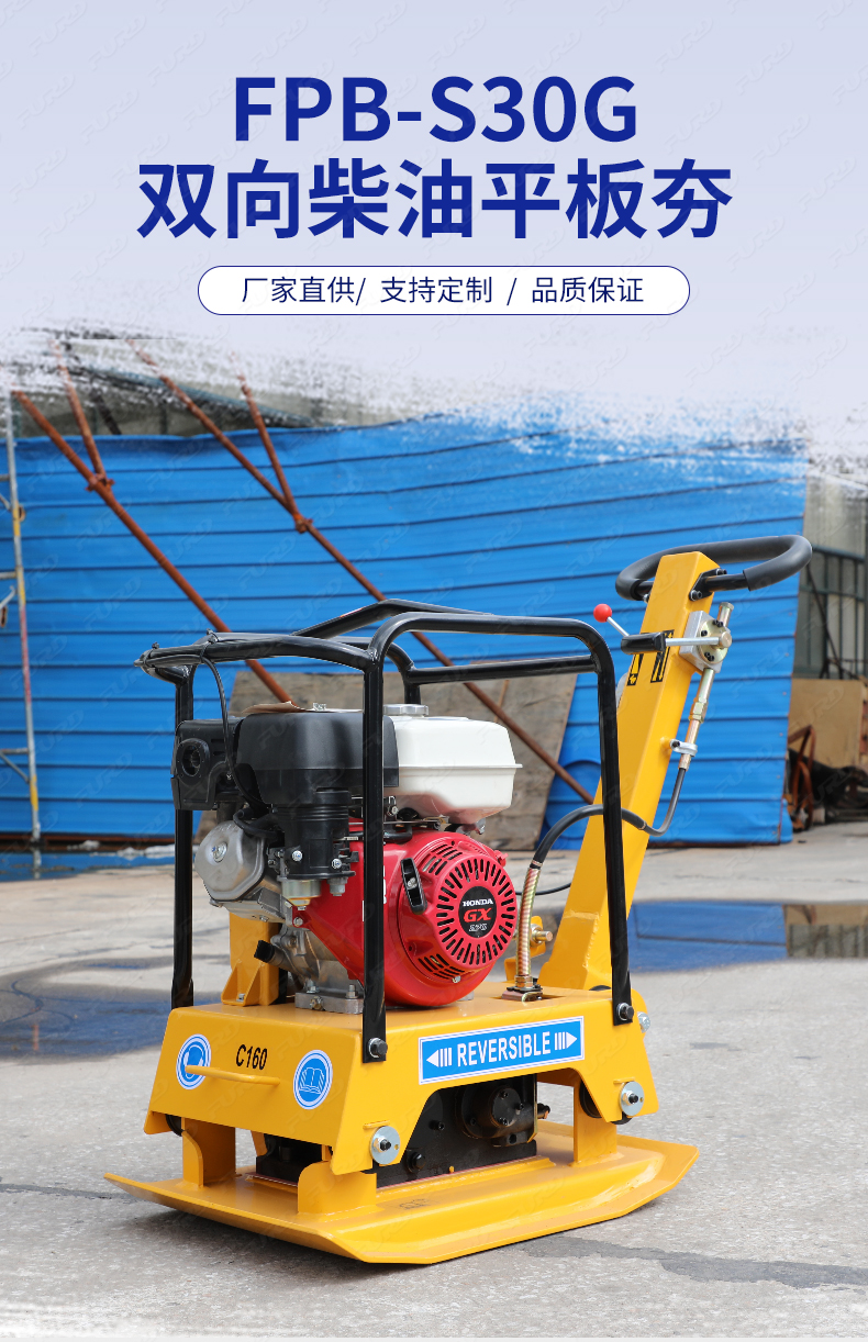 適用于路基邊緣、橋涵、管道、溝槽底部等狹長地帶的壓實(shí)。 本田汽油動力,名牌品質(zhì)保證。