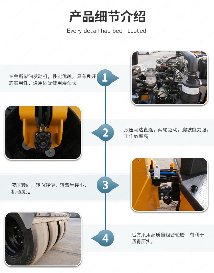 FYL-900T為橡膠輪胎振動壓路機,該壓路機前有鋼輪,后有橡膠輪,結(jié)合鋼輪和輪胎壓路機的優(yōu)點,具有更高的工作效率。